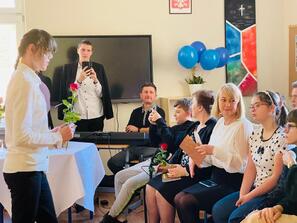 W przeddzień Święta Edukacji Narodowej zgromadziliśmy się wokół ołtarza by złożyć Bogu dziękczynienie za dar naszych szkół i prosić o błogosławieństwo dla całej wspólnoty. Po powrocie do szkoły młodzież złożyła Nauczycielom życzenia i wręczyła kwiaty. Uświetnieniem spotkania były utwory muzyczne zaprezentowane przez braci – Adriana i Jakuba.