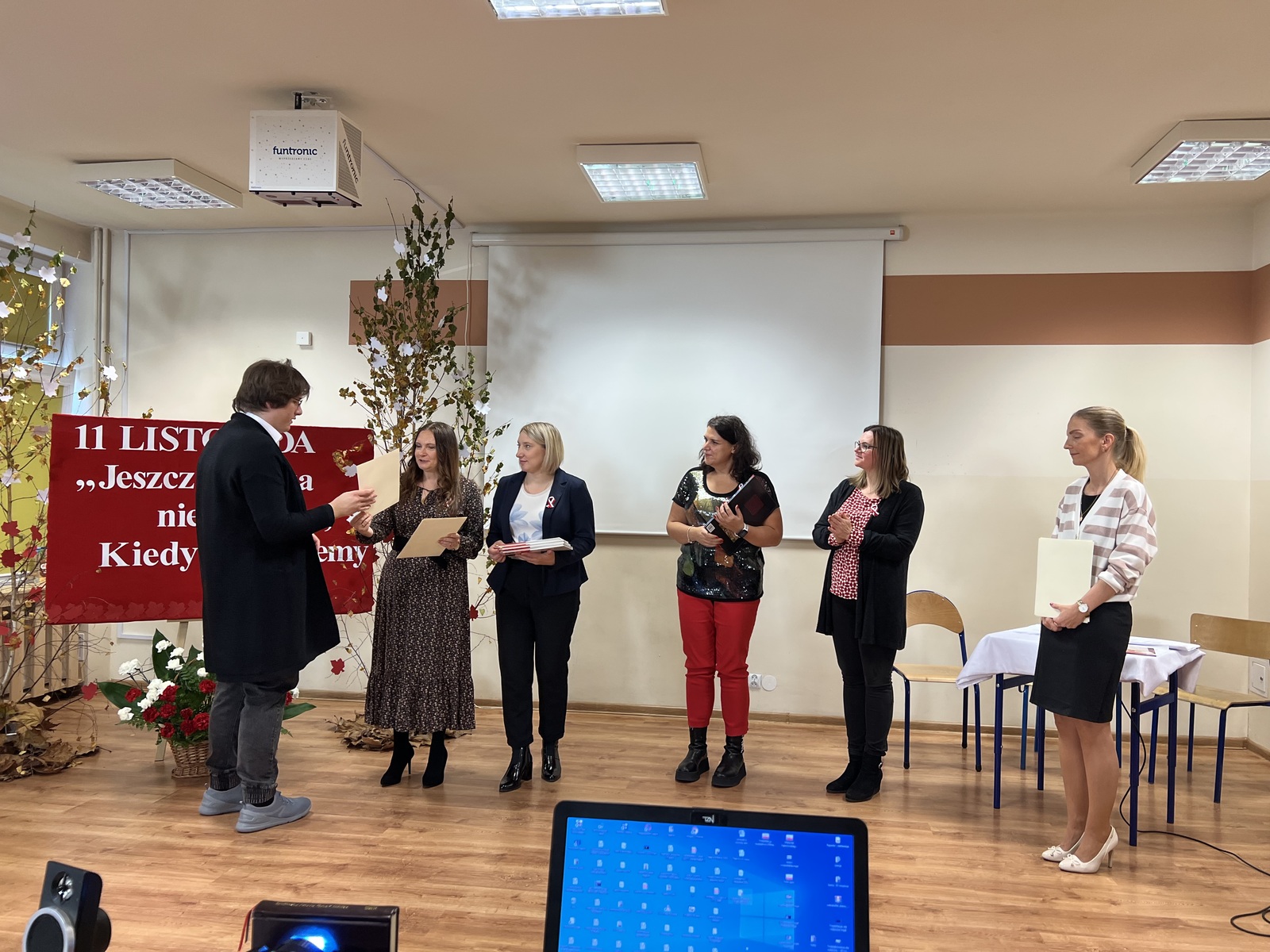 „Płomień rozgryzie malowane dzieje,/ Skarby mieczowi spustoszą złodzieje/ Pieśń ujdzie cało” mając w pamięci słowa wieszcza i na uwadze troskę o krzewienie patriotyzmu wśród młodego pokolenia wyszliśmy z inicjatywą zorganizowania I Międzyszkolnego Konkursu Recytatorskiego. I tak 10 listopada miłośnicy poezji zaprezentowali się przed konkursowym jury. Komisja pod przewodnictwem p. Agnieszki Grudzińskiej – doradcy metodycznego w RDN „WOM”- z wielką uwagą wysłuchała min. „Gawędy o miłości ziemi ojczystej”, „Hymnu Polaków na obczyźnie” czy cyklu sonetów Jana Kasprowicza. Biorąc pod uwagę opanowanie pamięciowe, dykcję, modulację i wyraz artystyczny jury przyznało I miejsce – Wiktorii Telkowskiej – uczennicy kl. III Kreatywnego Liceum Ogólnokształcącego „Erazmus”, która wykonaniem sonetów pt.: „Krzak dzikiej róży w ciemnych Smreczynach” wręcz oczarowała publiczność. II miejscem uhonorowano Pawłowa Nowakowskiego – ucznia kl. III naszego liceum, który z wielkim wyczuciem zaprezentował utwór Wisławy Szymborskiej. Oliwia Deska- kl. II -została nagrodzona miejscem III za wykonanie wiersza pt.: „Co mas kochać?”, pozostali uczniowie otrzymali wyróżnienia.