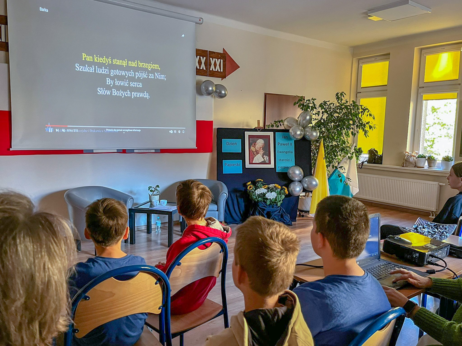 Dziś, chyba bardziej niż kiedykolwiek, człowiekowi trudniej przyjmować cierpienie. Ludzie nie chcą się na nie godzić, szukają ucieczki, rozwiązań, dopatrują się w nim kary. Dlatego to właśnie dziś, gdy żyjemy w kulcie młodości tak potrzeba nam zatrzymać się i przypomnieć sobie świadectwo życia, cierpienia i świętości wielkiego Papieża Polaka. Zwraca na nie uwagę hasło XXIV Dnia Papieskiego; Jan Paweł II. Ewangelia starości i cierpienia. Wokół tych słów skoncentrowały się rozważania uczniów szkoły podstawowej i liceum. W trakcie spotkania młodzież poprzez lekturę fragmentów książki pt.” Dar i tajemnica” oraz pokaz multimedialny zapoznała się z biografią św. Jana Pawła II. Prelekcja rozbudziła ciekawość uczniów i zainspirowała do poszerzania wiedzy na temat wielkiego dzieła pontyfikatu Naszego Papieża tym bardziej, że wiązała się z zapowiedzią uczestnictwa w ogólnopolskim konkursie.