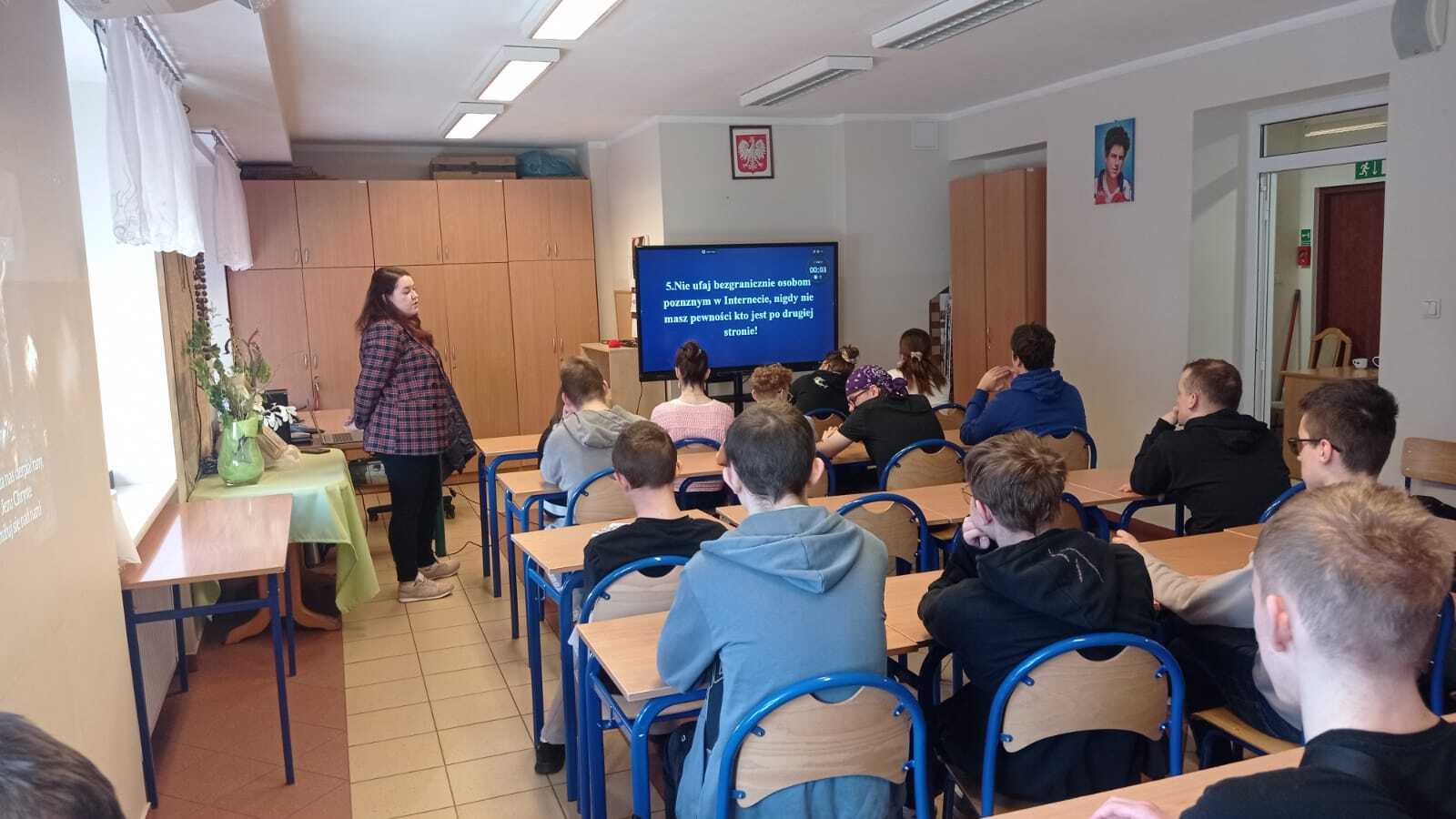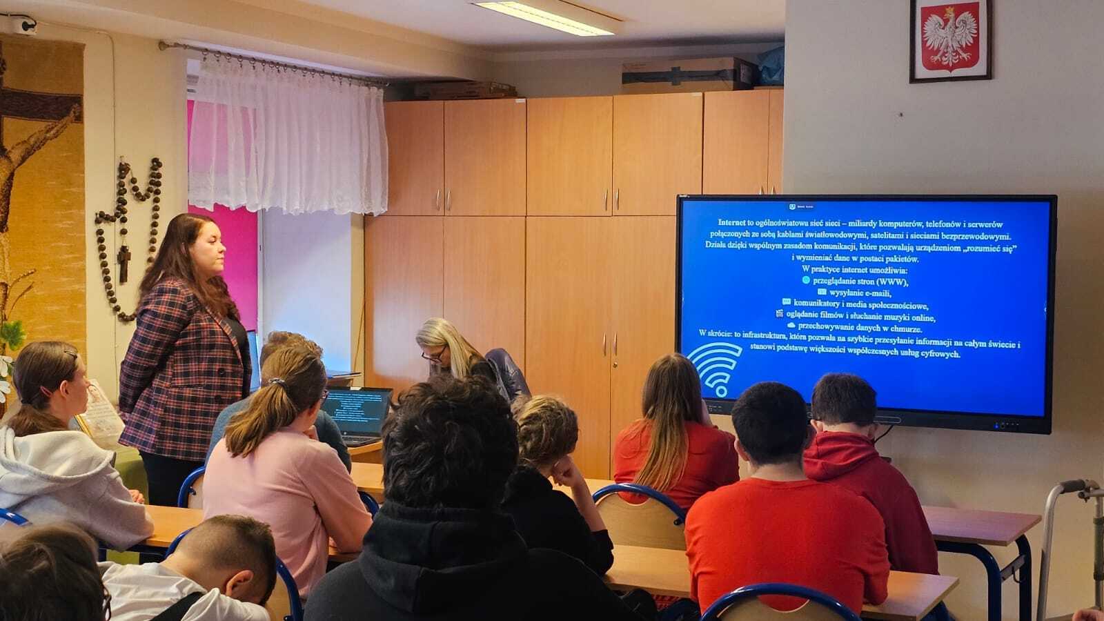 W dniu 03.03.2026 w naszej szkole odbyły sie prelekcje dotyczące bezpieczeństwa w Internecie. Uczniowie dowiedzieli sie między innymi jak chronić swoją prywatność, zapewniać bezpieczeństwo w Internecie sobie i swoim bliskim oraz jak radzić sobie z hejtem. Na koniec zajęć uczniowie mogli zmierzyć się z testem sprawdzającym ich wiedzę.