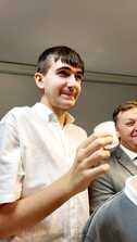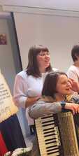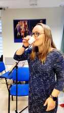 Potem przyszedł czas na zabawę! Nowi uczniowie odpowiadali na pytania o szkole, a także stanęli przed nietypowym zadaniem – musieli spróbować dość kwaśnego napoju. Wszyscy zdali ten „test odwagi” celująco! Łącznie z nowym nauczycielem - panią psycholog.
