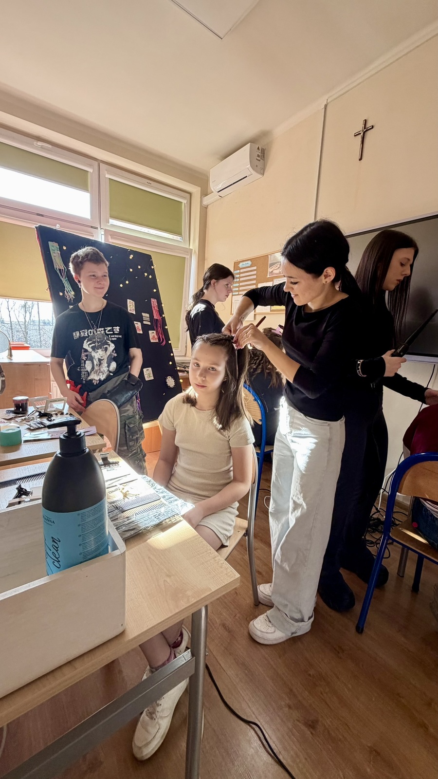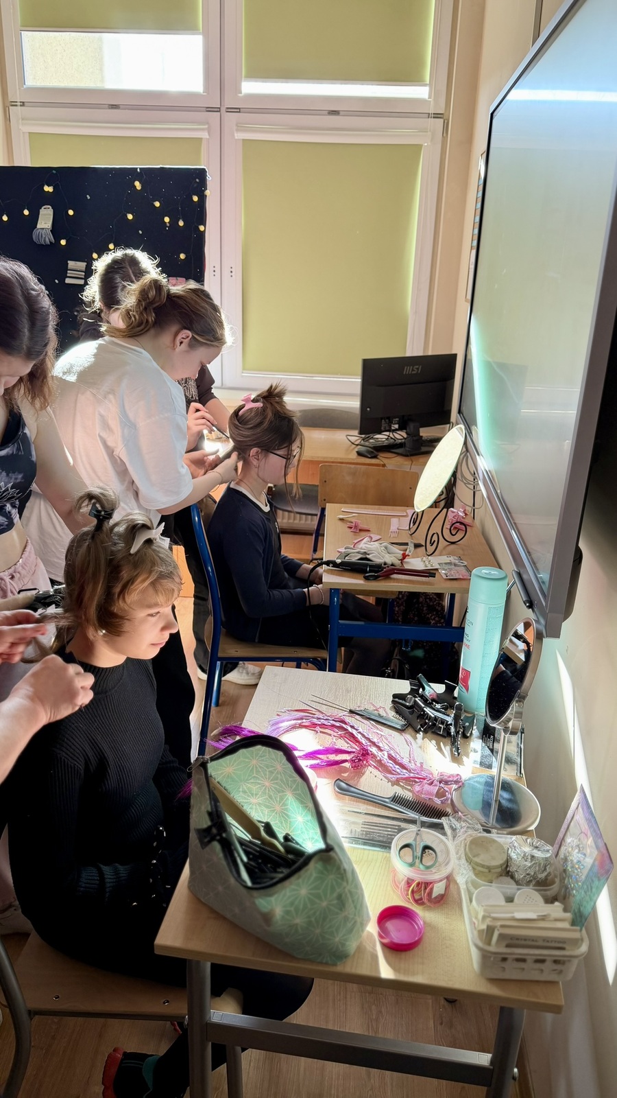 Kwiaty, kawka, coś słodkiego i... wizyta u fryzjera! To jest to co kobiety lubią najbardziej. W tym roku połączyliśmy wszystkie te przyjemność, dzięki czemu tegoroczny Dzień Kobiet był wyjątkowy. Już w piątek Panowie przywitali Panie kwiatami i słodkościami. W poniedziałek natomiast sale lekcyjne zamieniły sie w kawiarenkę i salon fryzjerski. Dzięki uprzejmości Pani Małgorzaty i uczennic ksztalcacych się w zawodzie fryzjerki w Centrum Kasztalcenia Zawodowego i Ustawicznego każda z naszych uczennic została pięknie uczesana. Upamietnieniem tej chwili była wyjątkowa sesja zdjęciowa.